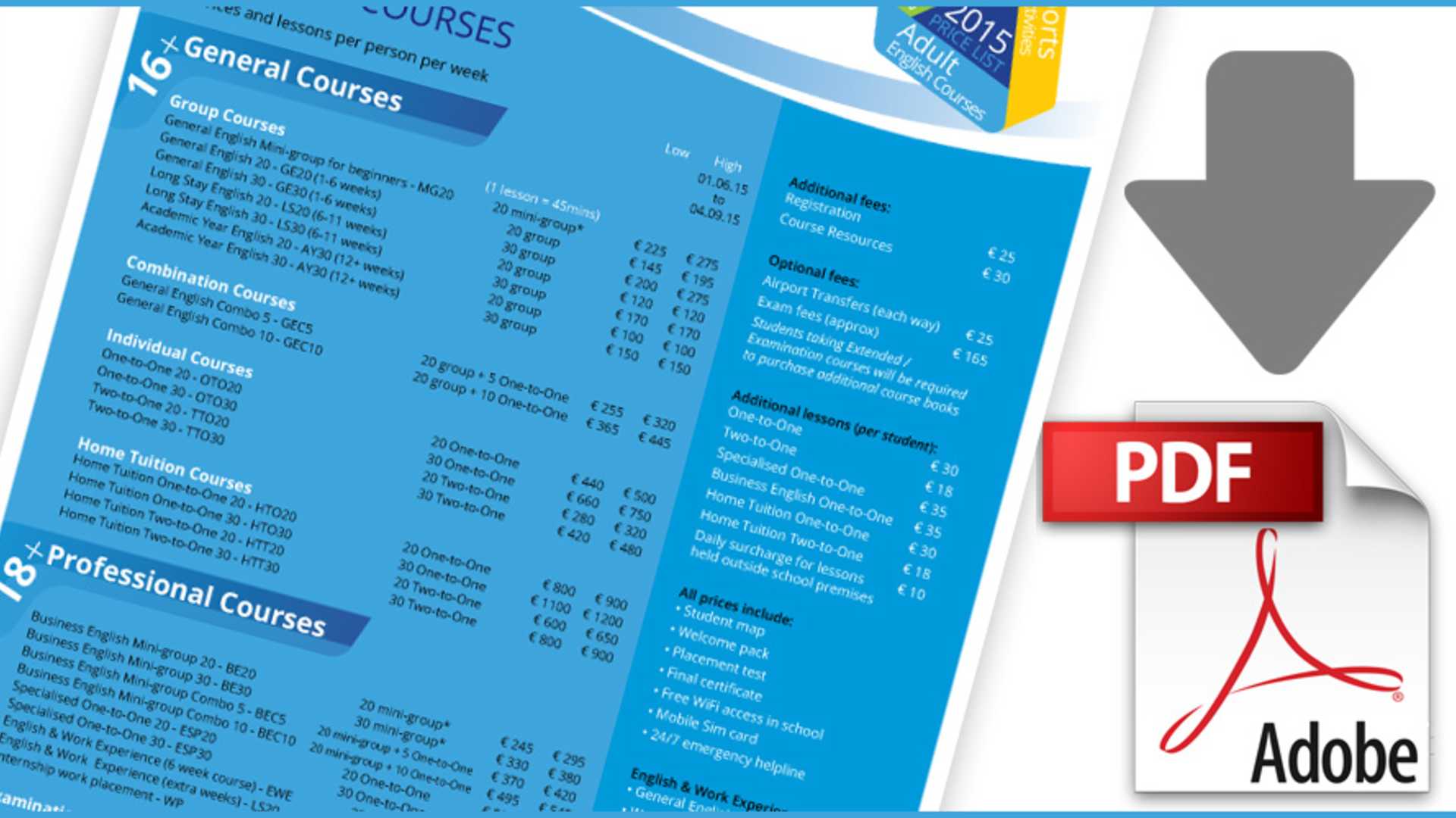 - Price excludes our €50 registration fee PER BOOKING & €30 course resources fee PER STUDENT. These extra fees will be added to your final invoice.